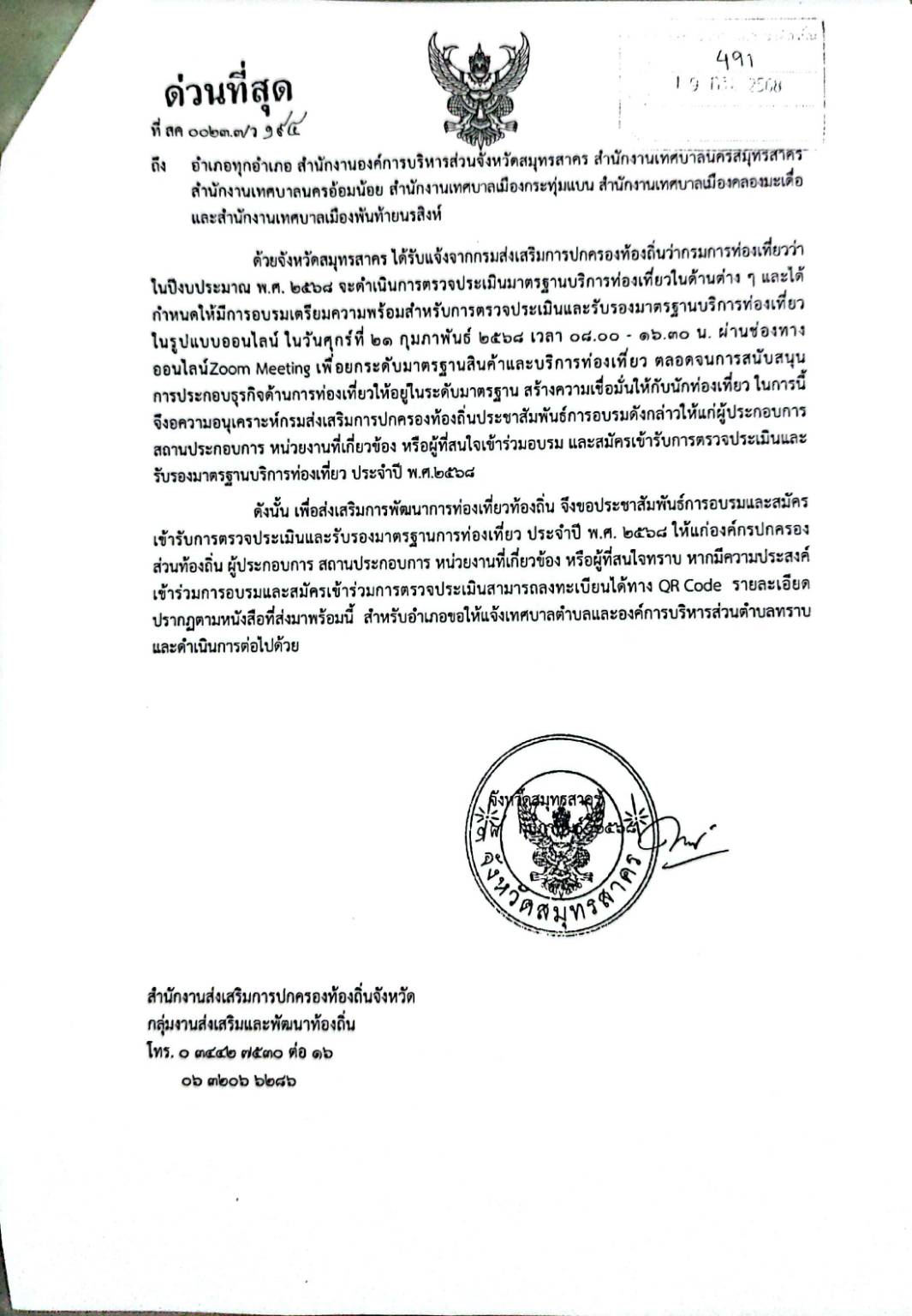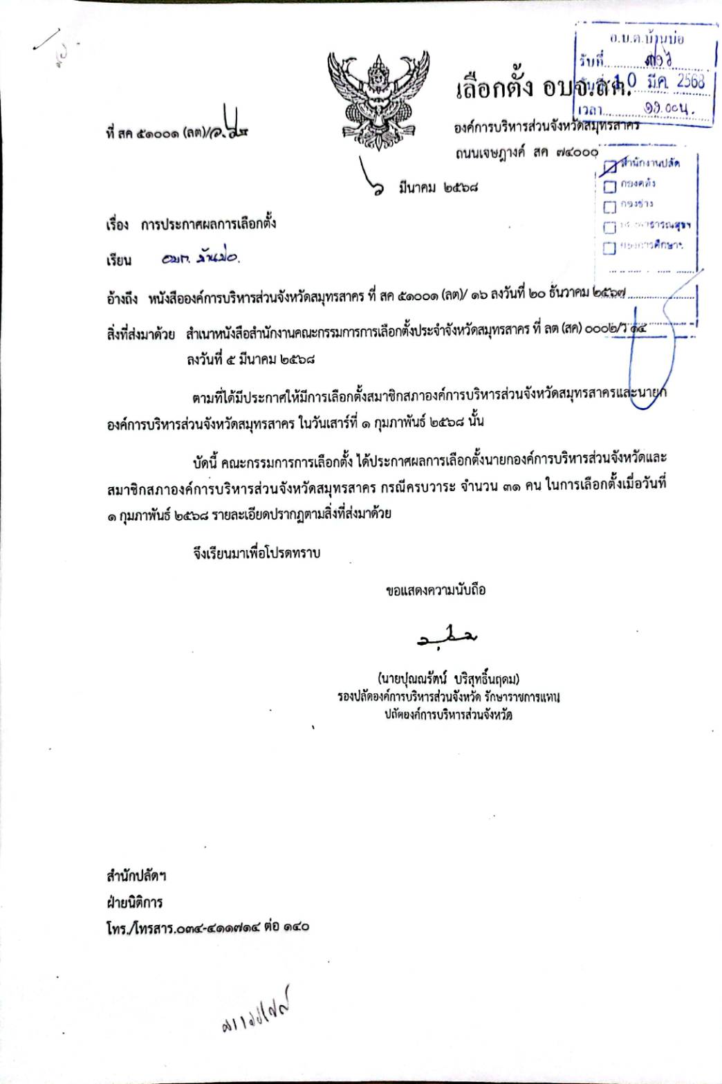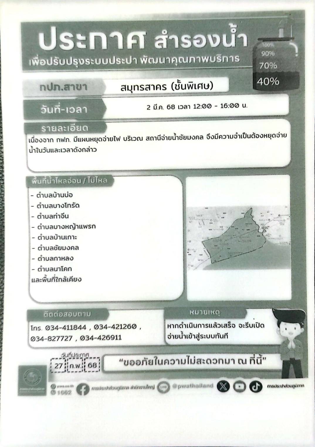 องค์การบริหารส่วนตำบลบ้านบ่อ อำเภอเมืองฯ จังหวัดสมุทรสาคร โทร. 0-3443-4070