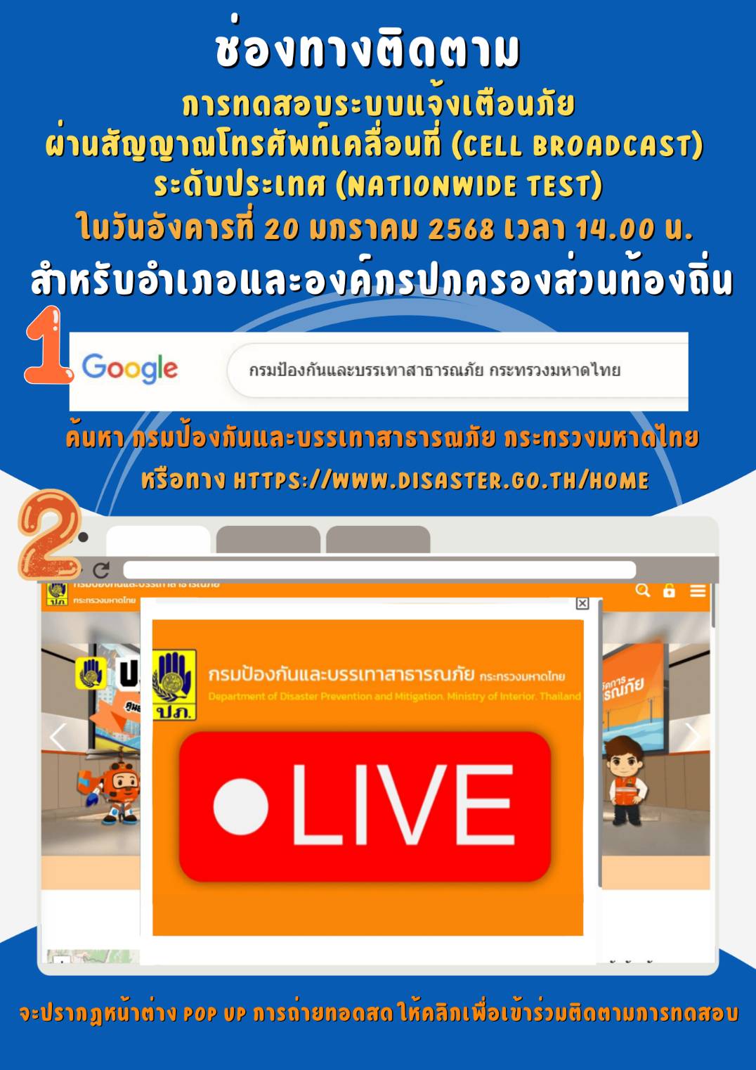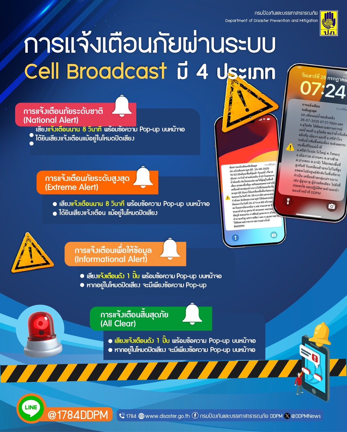 ประชาสัมพันธ์และสร้างการรับรู้การทดสอบระบบแจ้งเตือนภัยผ่านสัญญาณโทรศัพท์เคลื่อนที่ Call Broadcast ระดับประเทศ Nationwide Test